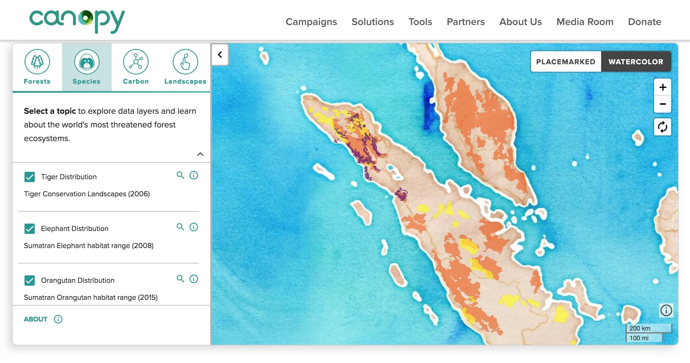 GreenInfo Network creates data, maps and websites for organizations working in non profit and public interest sectors. The Canadian non profit, Canopy wanted an interactive mapping tool to help their stakeholders in publishing, packaging, and textiles transition to more sustainable fiber supply chains.