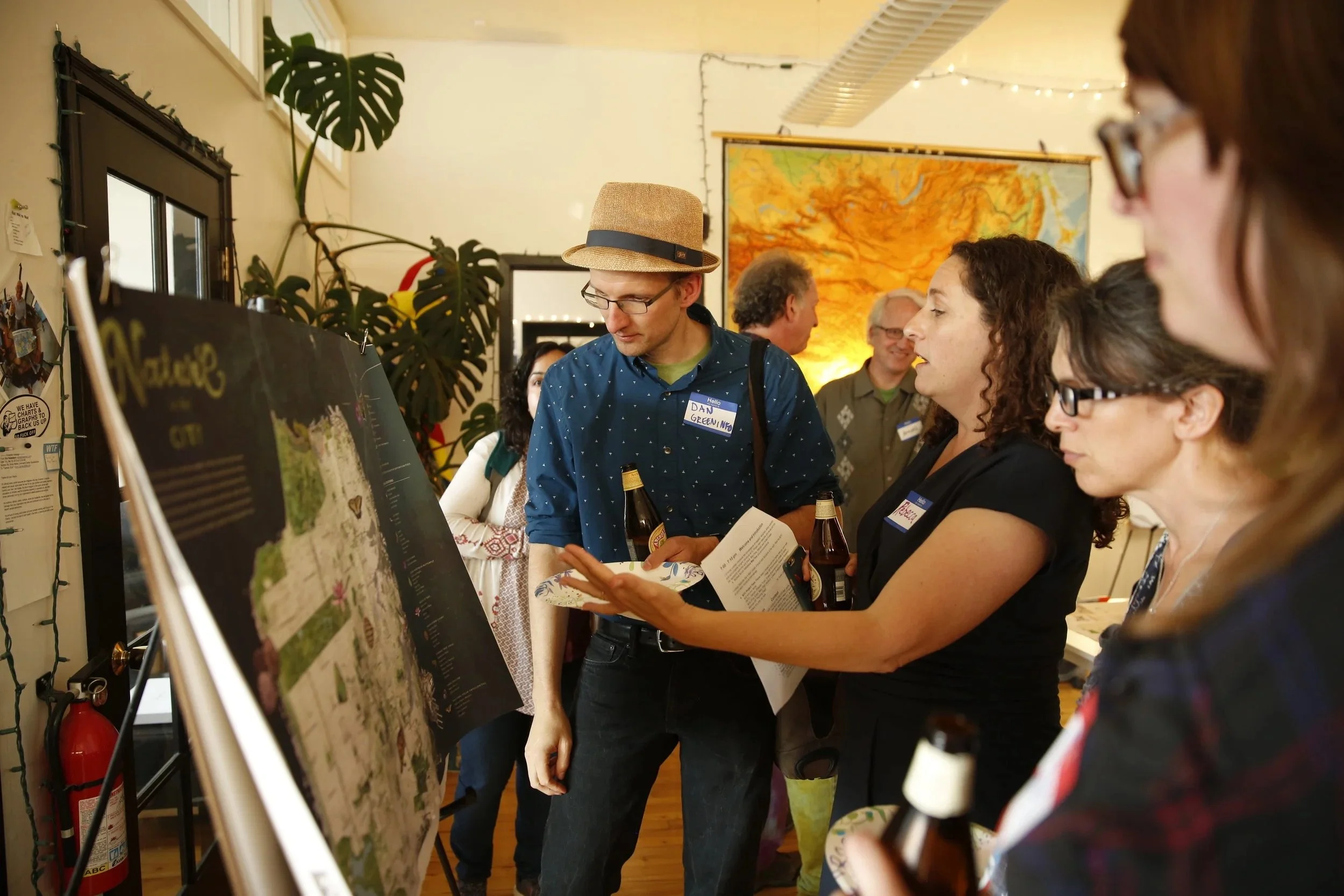 Artistic + Technical Challenge: The goal of the map was to inspire the general public to get out and discover nature right outside the door. However, distilling the story of Nature in the City onto a physical map was the most challenging task. The advisory board was made up of 8 agencies and organizations who contributed geospatial data, science, and opinions! After many planning sessions and workshops, we decided to reference the playful pictorial and thematic map styles of the past and allow our fine artist and author to distill the information into key stories told by a cast of charismatic species. We decided, the map has to be as beautiful as it is informative.